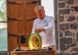 Yusuf Altınkaya, Diyarbakır karpuzunu tarihi mekanlarla işleyerek sanat eserine dönüştürüyor.